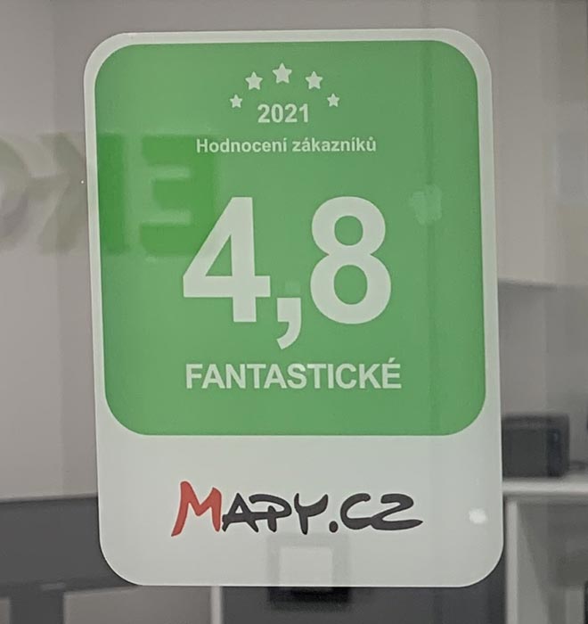 Děkujeme všem, kteří nás na mapách hodnotili a pomohli nám k celkové fantastické známce 4,8!